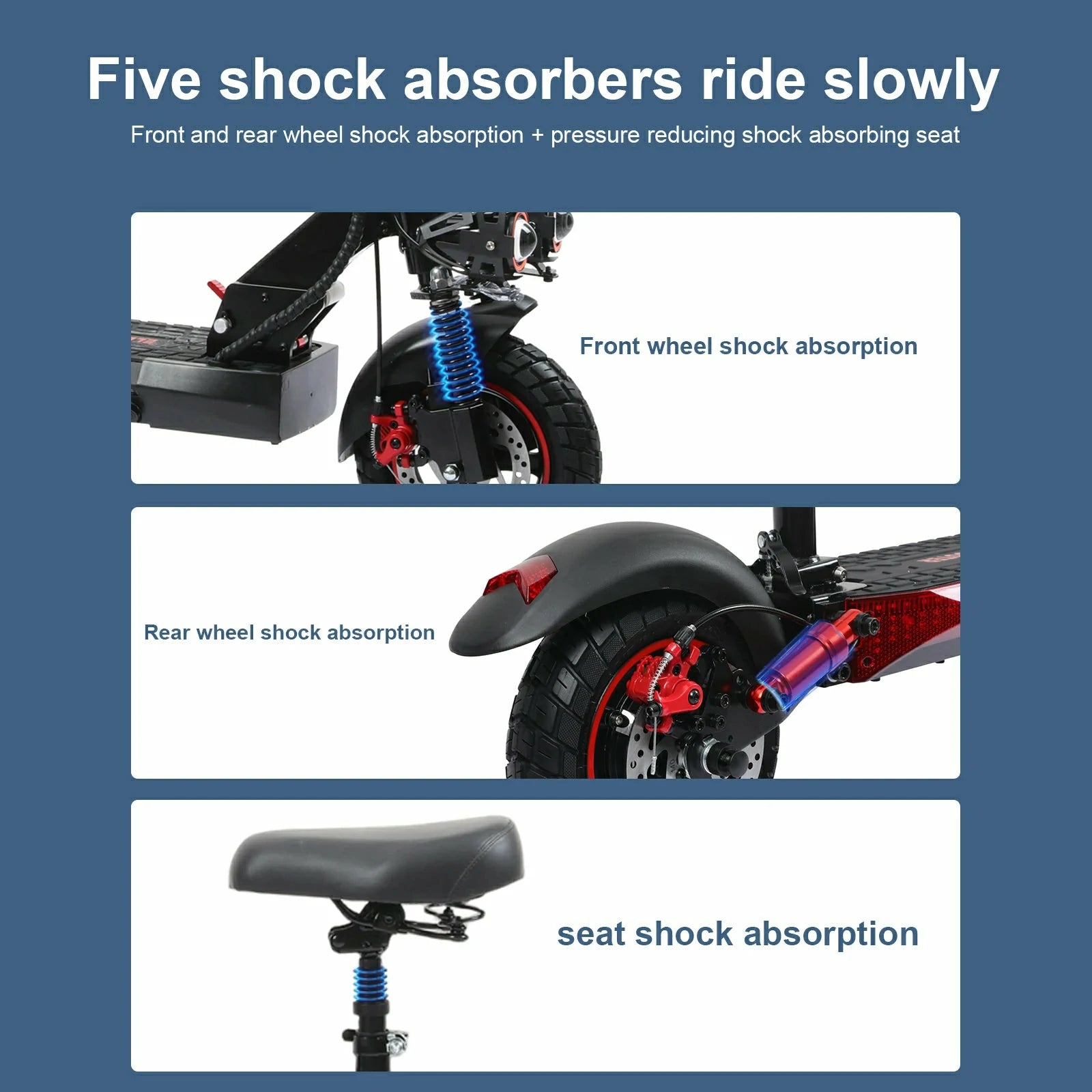 800W motor • 28 mph top speed • 5 suspension systems • 10" off-road tyres