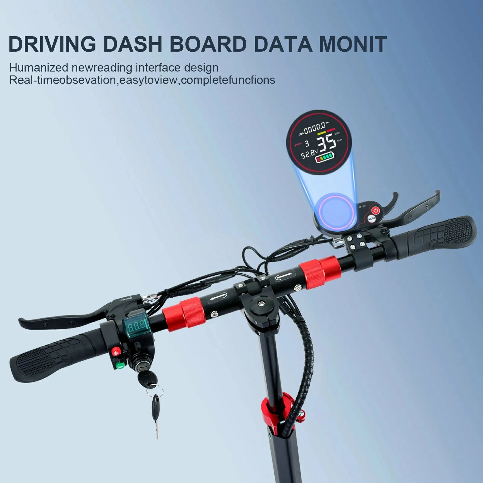 Multifunctional dashboard displays speed, battery, and mode clearly, while the anti-theft key adds security to your scooter.