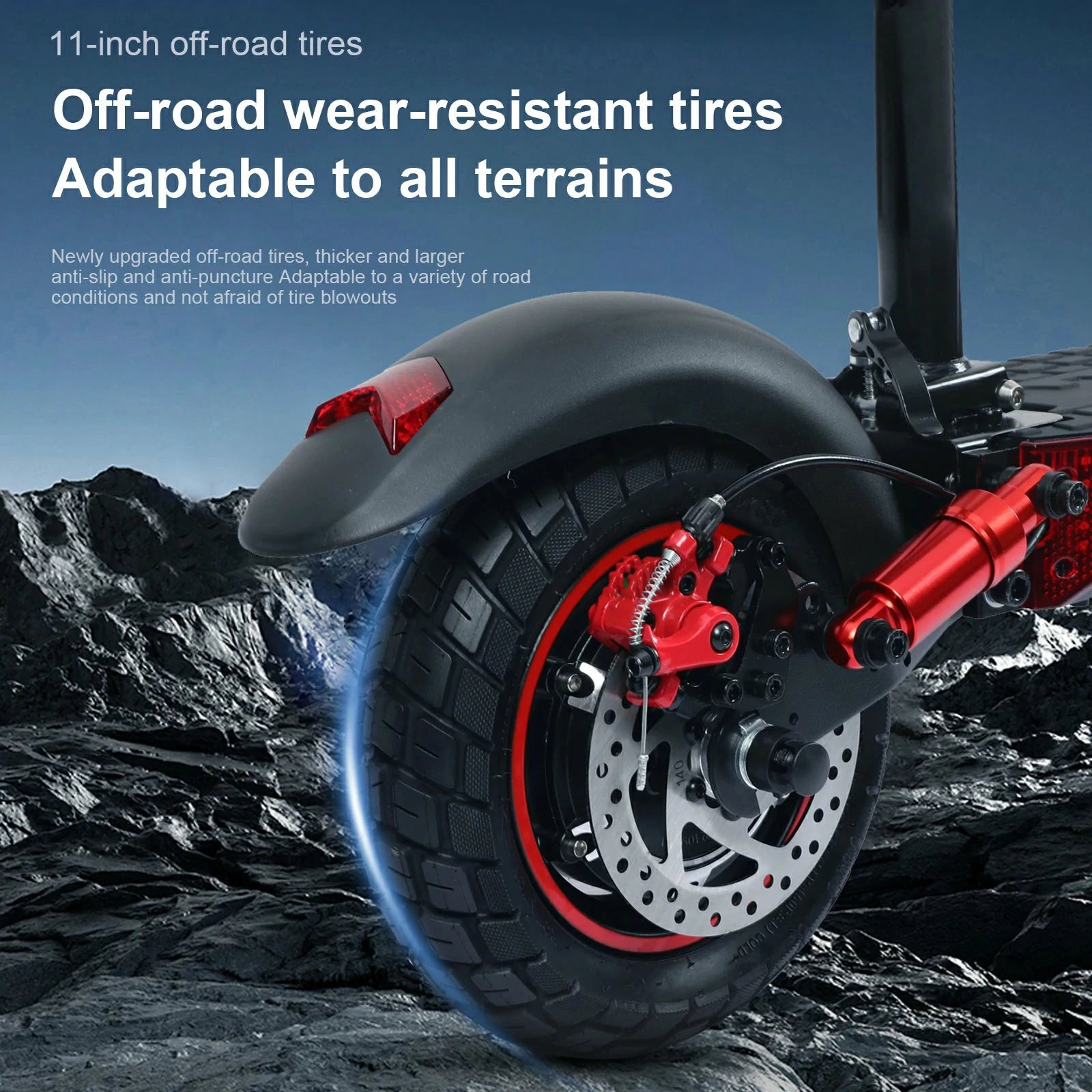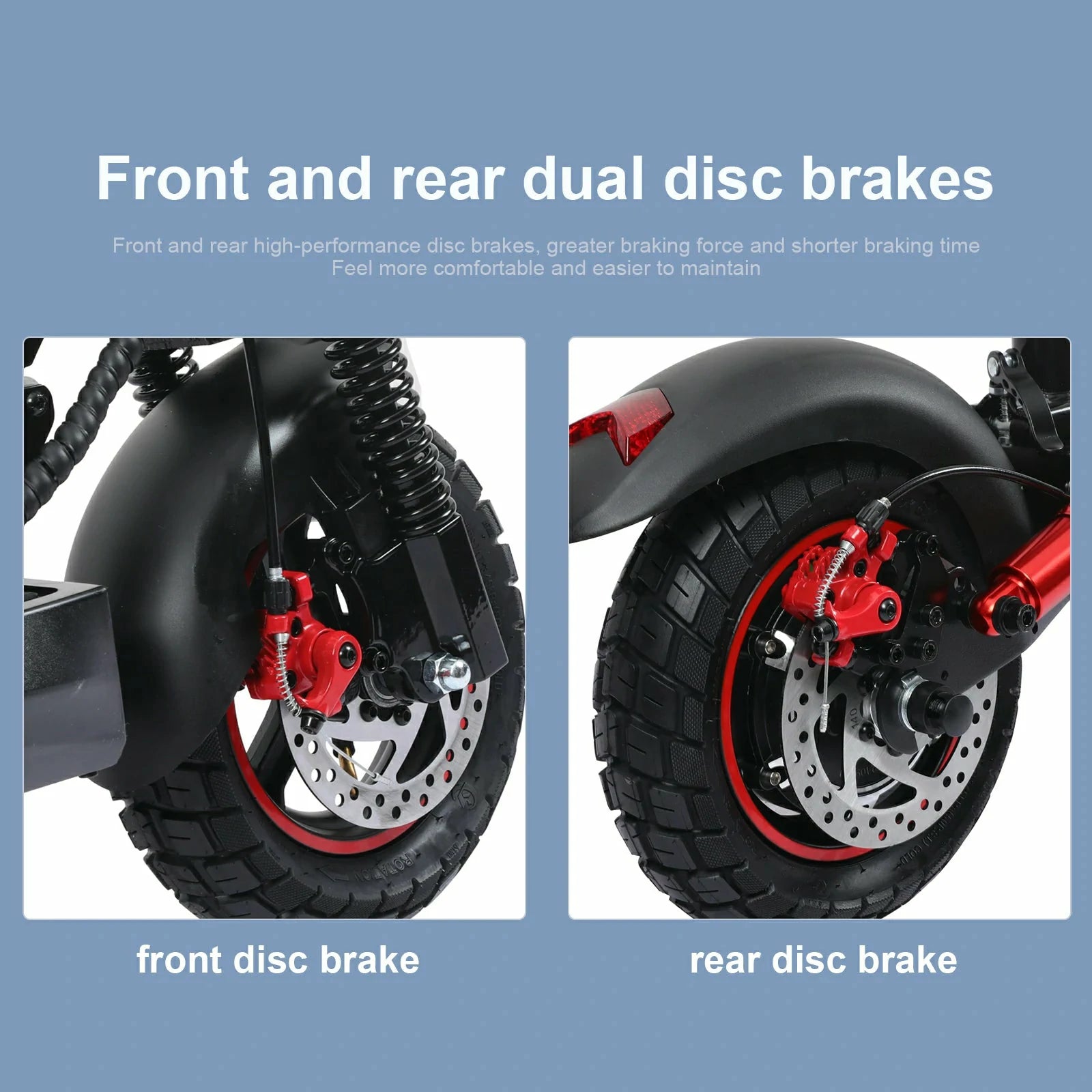 Equipped with dual disc brakes, the J11 electric scooter ensures enhanced safety and quick, reliable stopping power, giving you full control and confidence even at high speeds or in challenging conditions.